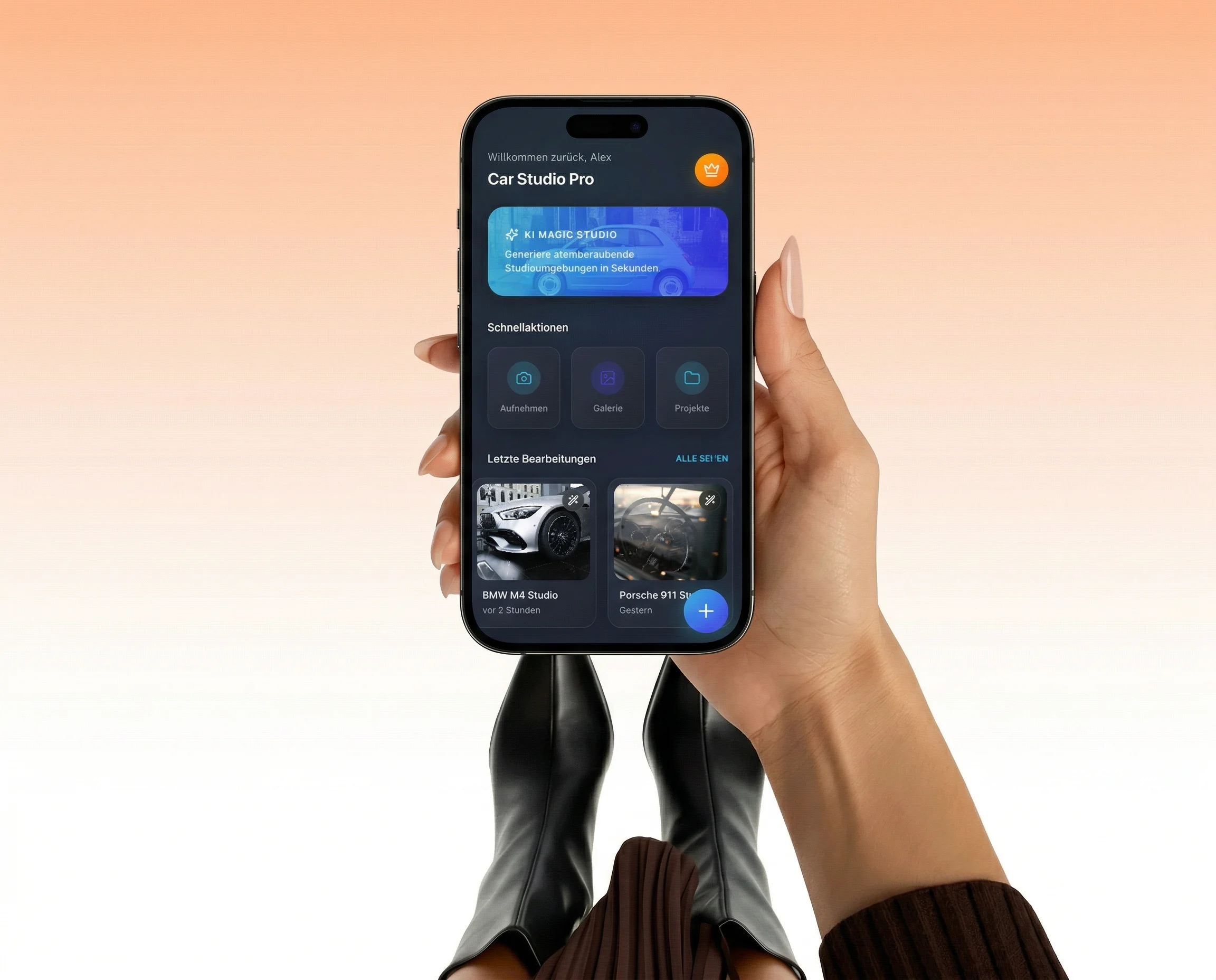👉 Jetzt Kontakt aufnehmen →Laut mobile.de erzielen Inserate mit professionellen Fahrzeugbildern bis zu 3x mehr Anfragen. Kein Fotostudio, kein externer Fotograf, keine Wartezeit — nur dein iPhone und die App.